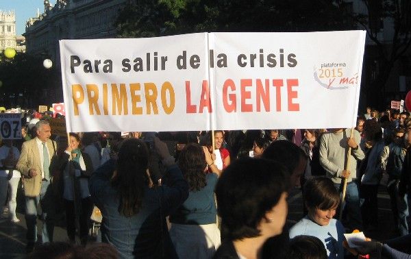 Las organizaciones miembro de la Plataforma 2015 y más, acudieron conjuntamente bajo el lema "Para salir de la crisis PRIMERO LA GENTE" con el que recordar que las consecuencias de la recesión económica siempre las pagan los que menos tienen; se socializan las pérdidas y no las ganancias. Es necesario invertir en las personas antes que en los bancos.