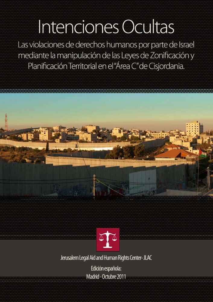 Esta publicación realizada por el Jerusalem Legal Aid and Human Rights Center (JLAC), es parte de una serie de informes elaborados y traducidos en el marco del Convenio "Apoyo a iniciativas de construcción de paz entre palestinos e israelíes, a través del fortalecimiento de organizaciones de ambas sociedades civiles, del diálogo político y social y del conocimiento, protección y sensibilización sobre el derecho internacional y los derechos humanos" financiado por la AECID y ejecutado por un consorcio de 6 organizaciones de la Plataforma 2015 y más (ACSUR Las Segovias, IEPALA, Mundubat, CEAR, Habitáfrica, Solidaridad Internacional). El presente informe pretende demostrar la naturaleza discriminatoria de las políticas de zonificación y planificación territorial del "Área C" de Cisjordania, así como la manera en que dichas políticas suponen una clara contravención del derecho internacional.