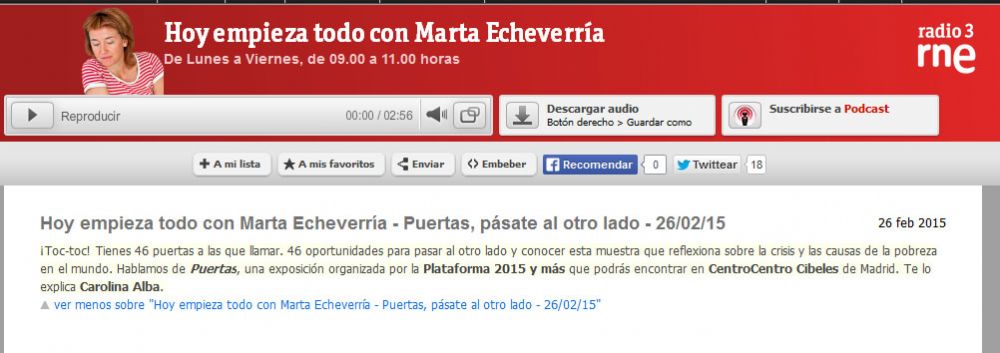 Mas información: Hoy empieza todo con Marta Echeverría (Radio 3, 26/02/2015)