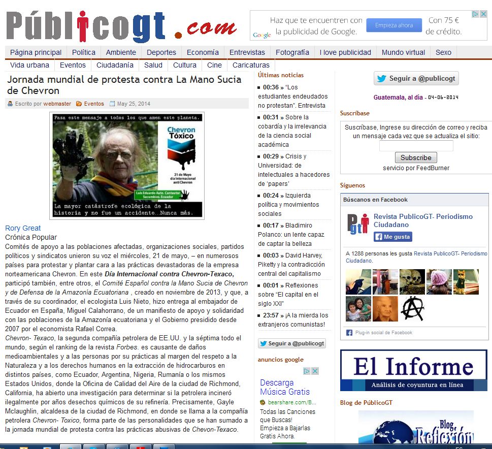 Jornada mundial de protesta contra La Mano Sucia de Chevron