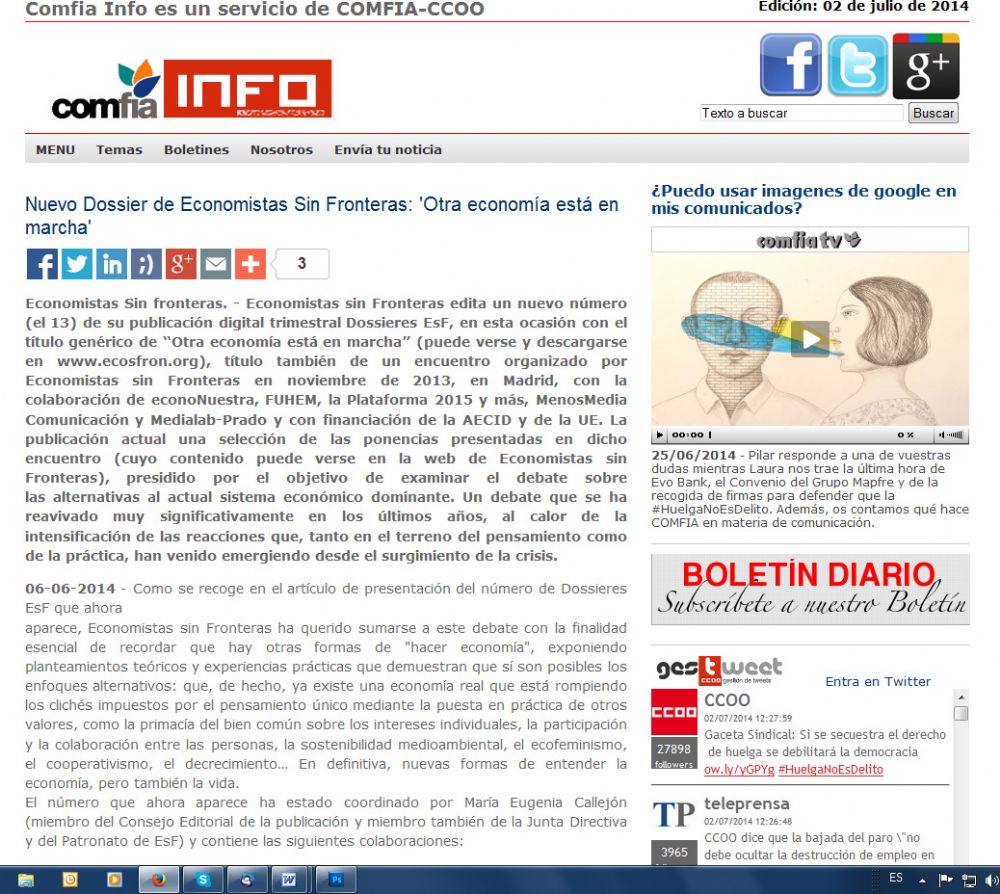 Nuevo Dossier de Economistas Sin Fronteras: "Otra economía está en marcha"