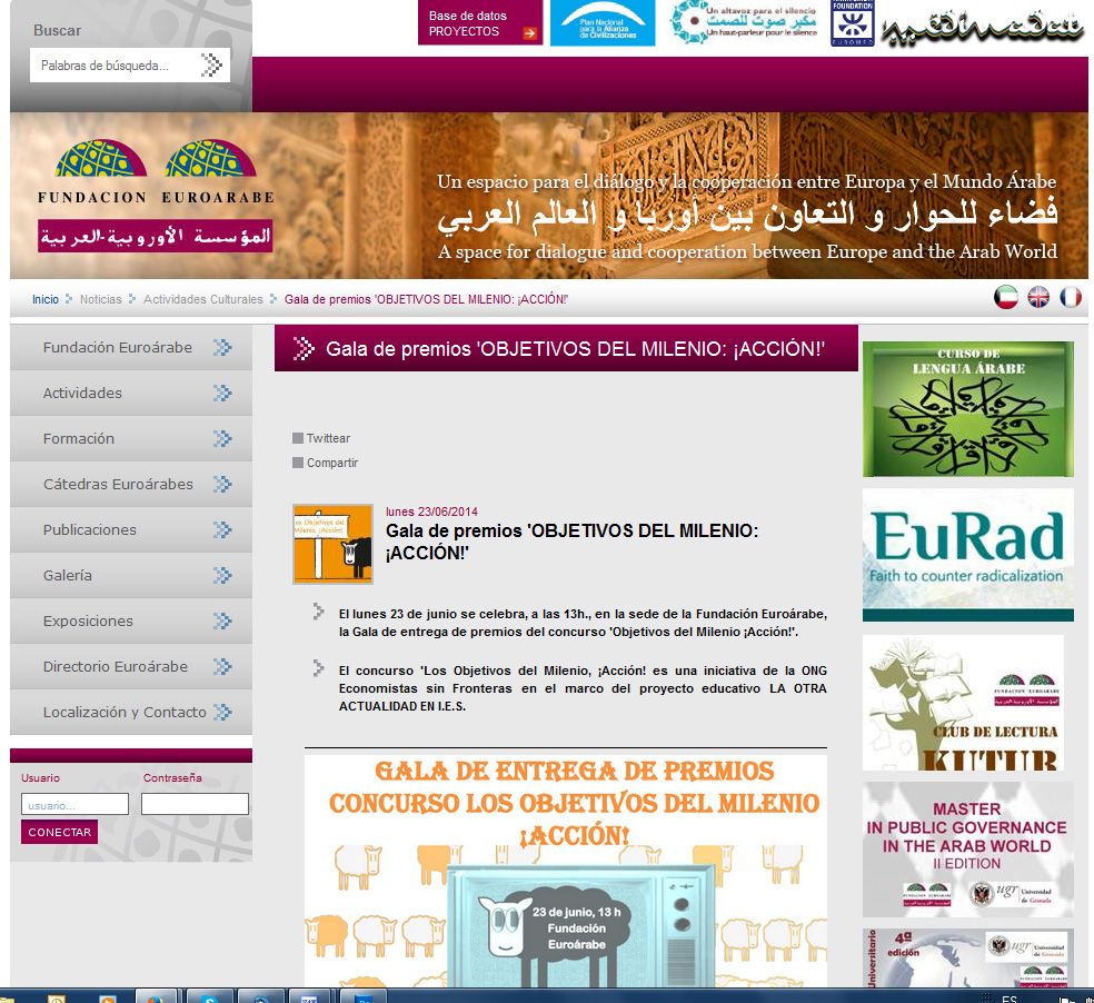 El lunes 23 de junio se celebra, a las 13h., en la sede de la Fundación Euroárabe, la Gala de entrega de premios del concurso "Objetivos del Milenio ¡Acción!".