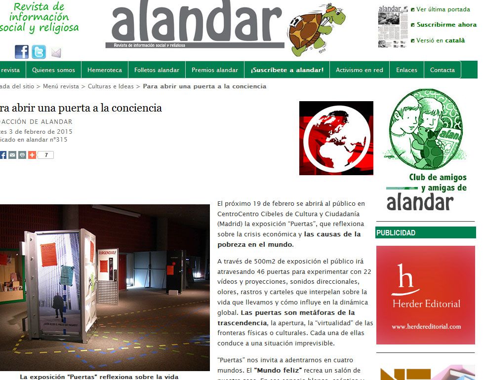El próximo 19 de febrero se abrirá al público en CentroCentro Cibeles de Cultura y Ciudadanía (Madrid) la exposición "Puertas", que reflexiona sobre la crisis económica y las causas de la pobreza en el mundo.