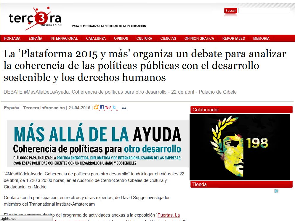 La ’Plataforma 2015 y más’ organiza un debate para analizar la coherencia de las políticas públicas con el desarrollo sostenible y los derechos humanos