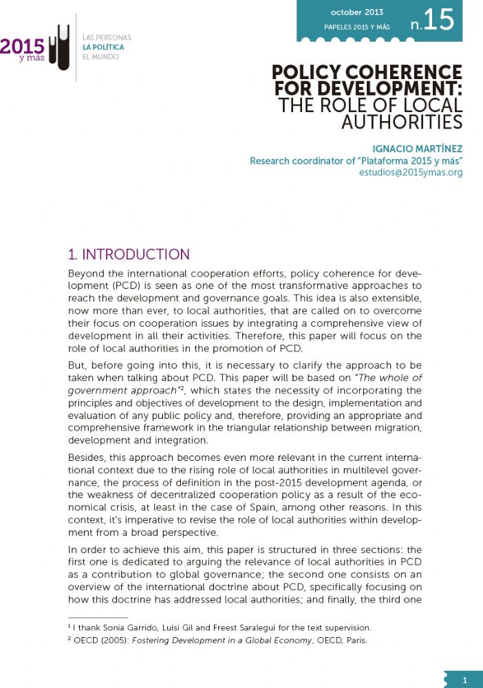 En este nuevo papel de la editorial 2015 y más analizamos el rol fundamental de los gobiernos locales como agentes transformadores en las políticas globales. Ignacio Martínez explica de manera sintética cómo las entidades locales pueden contribuir a plantear modelos de desarrollo y políticas más justas y coherentes, con grandes impactos a nivel global. Este artículo, publicado en inglés, pretende servir de herramienta de argumentación, reflexión y discusión a las organizaciones que trabajen el tema tanto en ámbitos locales como internacionales.