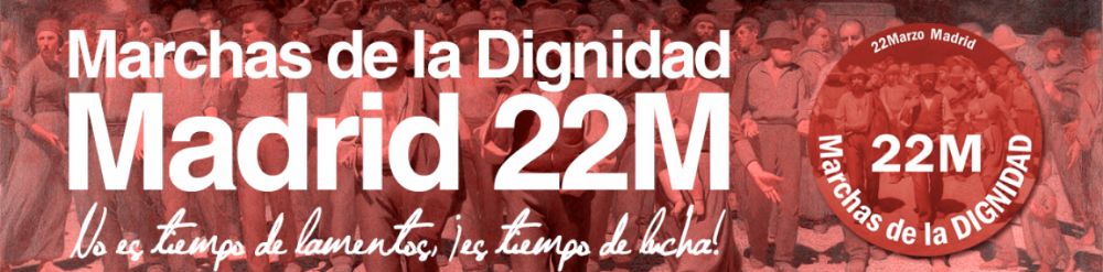 Las marchas de la Dignidad del 22M, llegarán el 22 de marzo a Madrid después de haber recorrido el territorio estatal durante el mes de Marzo, reivindicando el "NO PAGO A LA DEUDA", "SERVICIOS PUBLICOS PARA TODOS", "DERECHO A VIVIENDA PARA TODOS ", y "EMPLEO DIGNO Y RENTA BÁSICA".