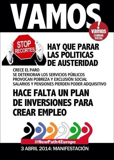 CCOO, UGT, USO y la Cumbre Social convocamos una jornada de manifestaciones para el día 3 en prácticamente todas las capitales de provincia (el 6 en Girona y Barcelona), bajo el lema ¡Basta ya de recortes!con las que queremos rechazar las políticas de austeridad y, al mismo tiempo, respaldar otras alternativas a las que están haciendo estragos en el empleo y atacan el modelo social europeo