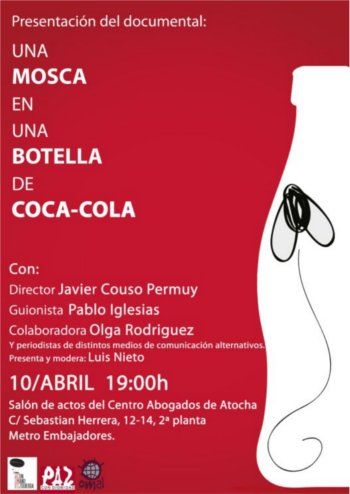 Os animamos a participar, el 10 de abril, de la presentación en Madrid del documental "Una mosca en una botella de Coca-Cola", una producción audiovisual de Producciones CMI para el Observatorio de Multinacionales en América Latina (OMAL) - Paz con Dignidad.