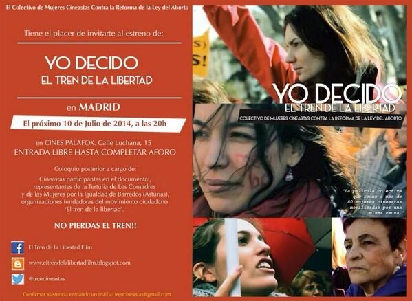 En febrero de 2014, más de 80 cineastas de todo España se unieron para llevar a cabo un documental colectivo sobre El tren de la Libertad: la marcha que miles de personas realizaron desde todos los rincones del país, hasta Madrid, para manifestarse y exigir que se mantenga vigente la actual ley del aborto.