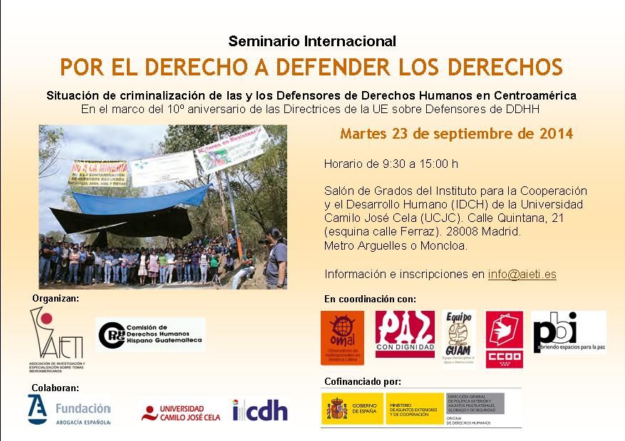 En el marco del 10º aniversario de las Directrices de la UE sobre Defensores de DDHH, os invitamos a participar de este seminario en el que se analizará la situación de criminalización de las y los Defensores de Derechos Humanos en Centroamérica