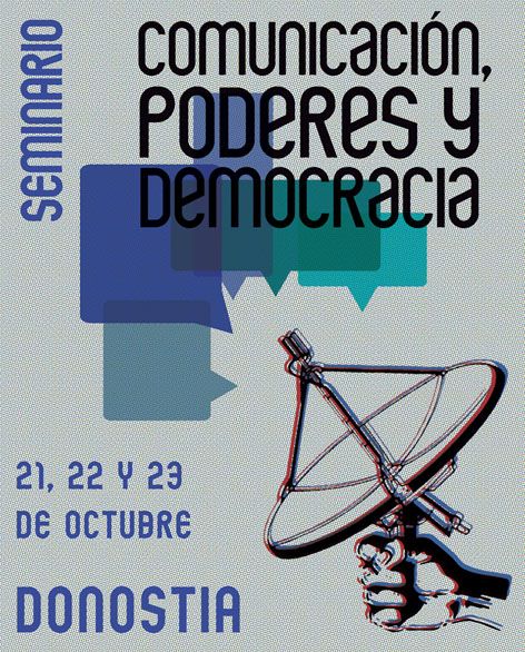 Participamos en el seminario "Comunicación, poderes y democracia" que se celebrará los días 21, 22 y 23 de octubre en la Facultad de Filosofía y Ciencias de la Educación (Campus de Ibaeta) de la Universidad del País Vasco (UPV/EHU). La actividad está abierta al público en general, y los y las estudiantes de la UPV/EHU podrán optar a un crédito optativo. El seminario está organizado por la revista Pueblos y la asociación Paz con Dignidad, con el apoyo de la UPV/EHU y el apoyo de la Diputación Foral de Gipuzkoa, en el marco de un proyecto de Educación Transformadora.