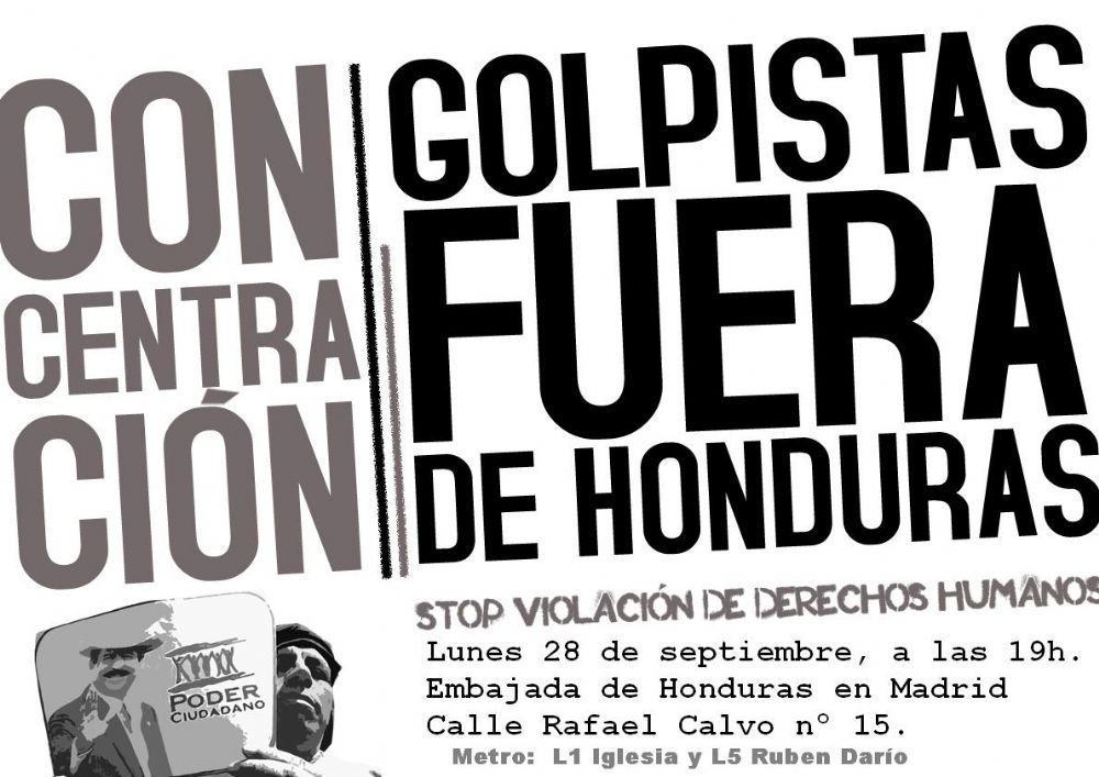 En solidaridad con el pueblo hondureño. Concentración contra el golpe de estado: Lunes 28 sept. 19h